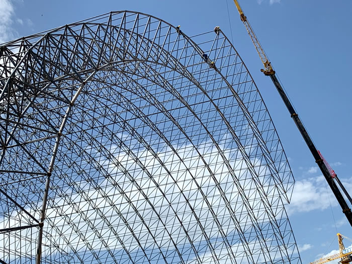 (2)网架加工前应对现场尺寸进行复测,确认无误后方可进行加工、安装;网架制作、运输、安装应遵守《空间网格结构技术规程》JGJ7-2010、《钢网架临夏螺栓球节点》JG/T 10-2009、《钢网架临夏螺栓球节点用高强度螺栓》 GB/T 16939-2016、《临夏钢结构临夏工程临夏施工规范》 GB50755-2012、《临夏钢结构临夏工程临夏施工质量验收标准》 GB50205-2020。